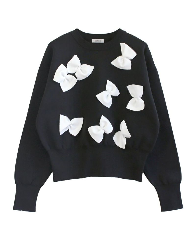 前後に付いた立体的なリボンが賑やかでかわいい、アイキャッチなニット。