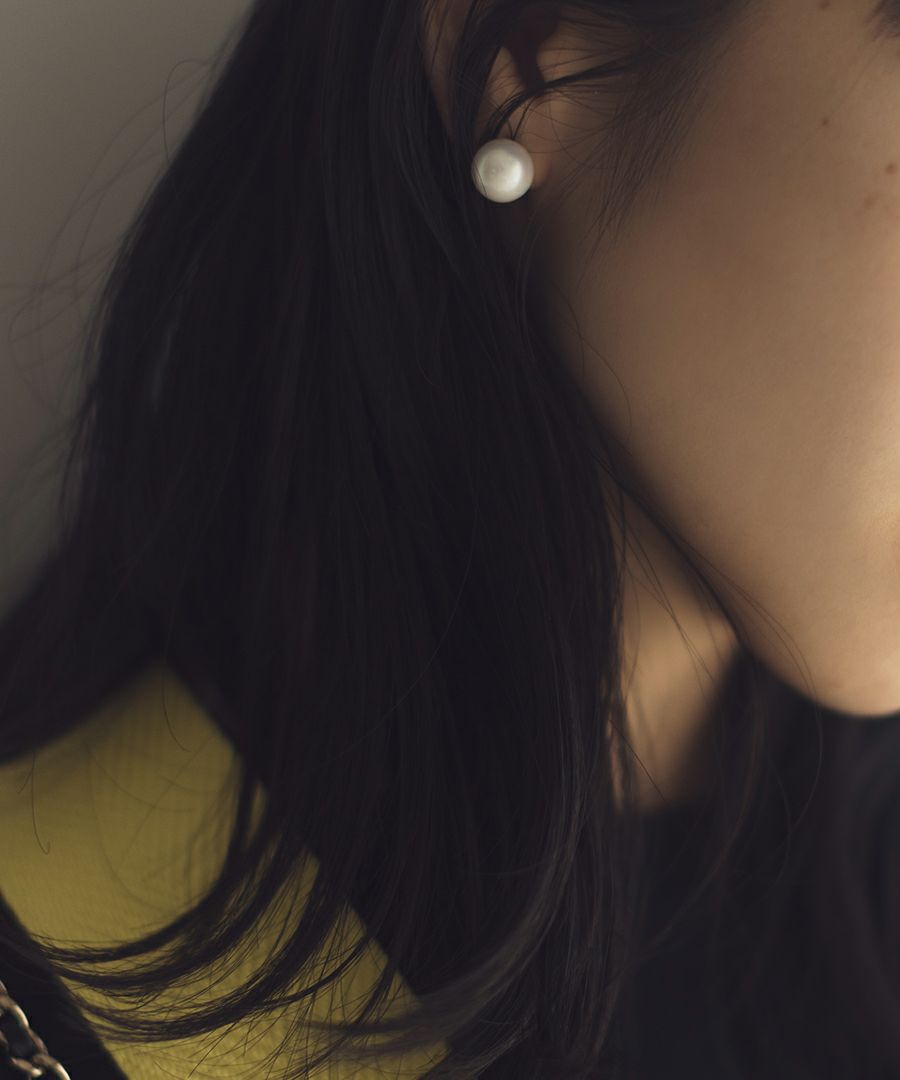 おおよそ10mmと存在感のあるパールが、顔まわりを上品に彩ってくれる。