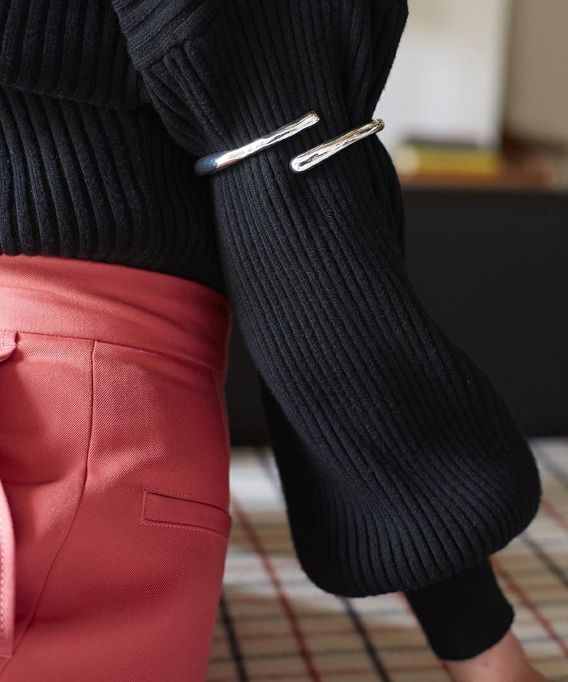 手首ではなく腕につけるバングルで、ニットなど長袖の上から付ける仕様となります。