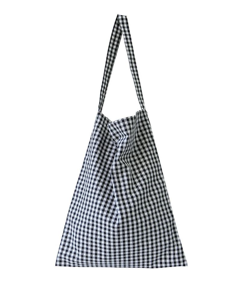 コーディネートのアクセントになるギンガムチェックのワンショルダーバッグ。