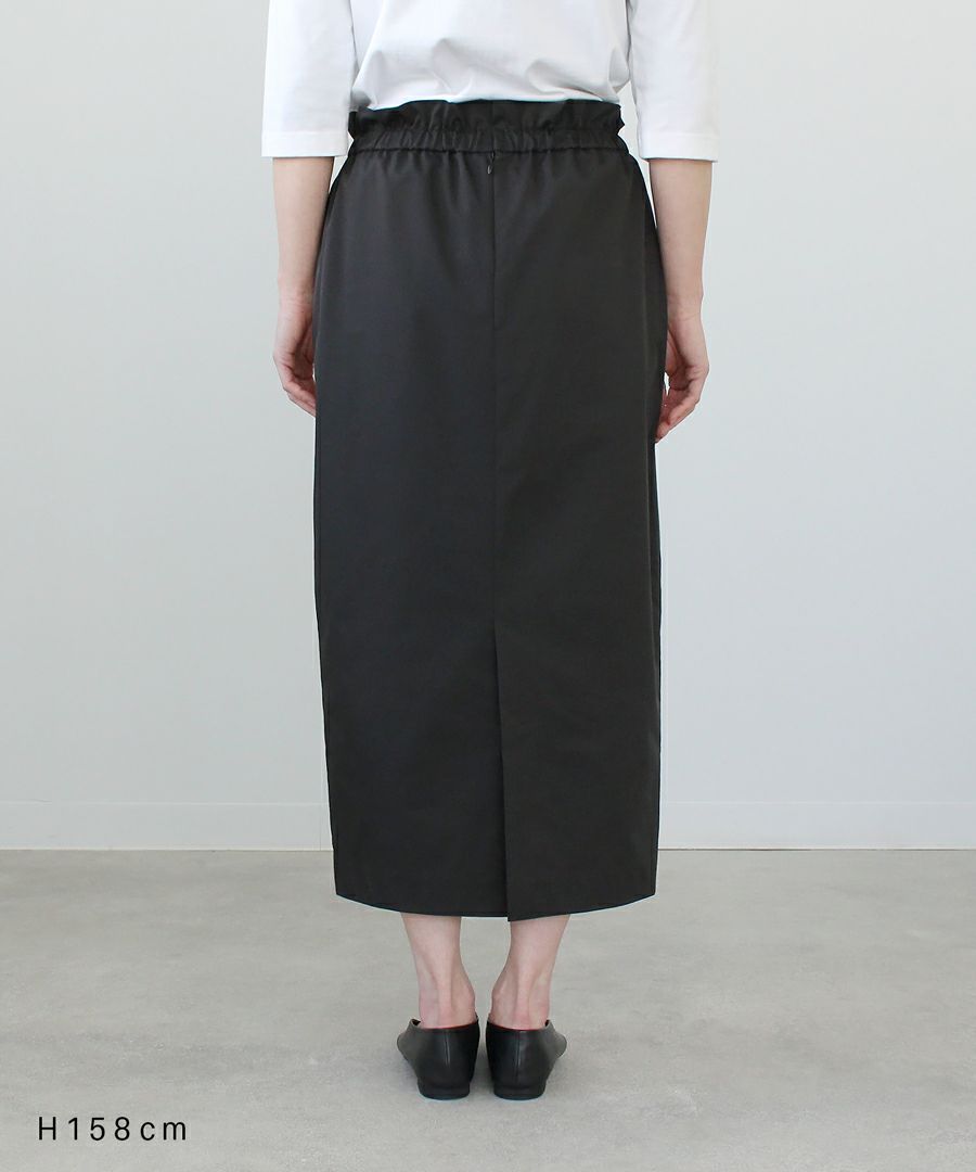 ゴム仕様のウエストながら、トップスをインしてもアウトしてもきれいなシルエットに。