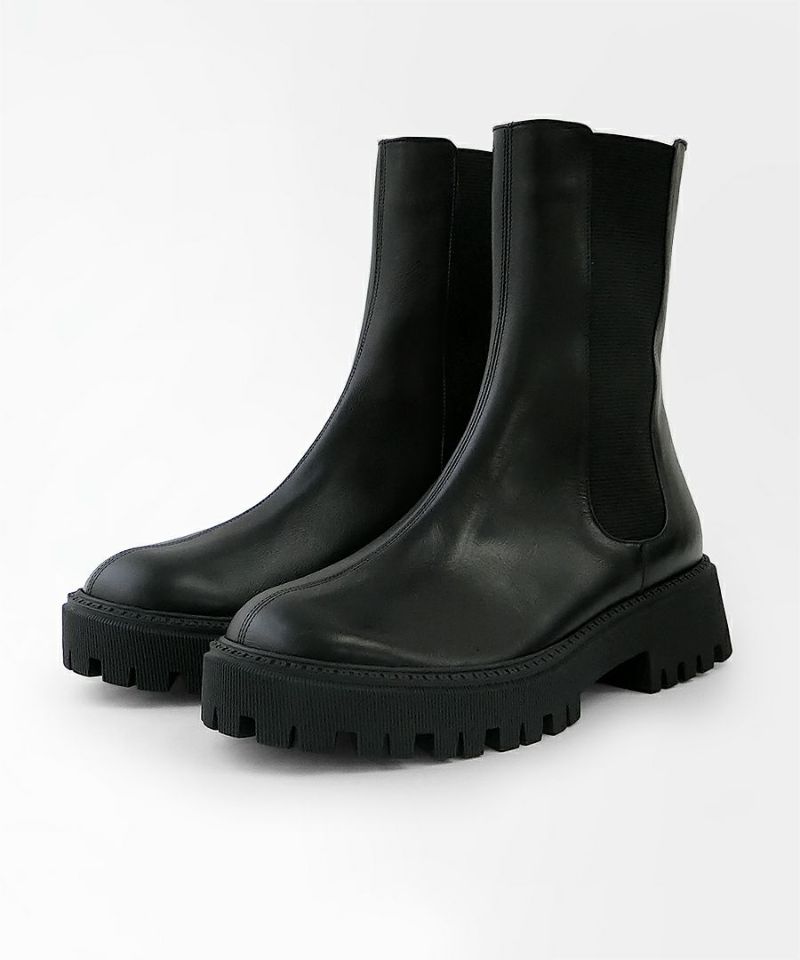 存在感のあるソールと少し長めの丈がトレンドライクなチェルシーブーツ。