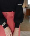 手首ではなく腕につけるバングルで、ニットなど長袖の上から付ける仕様となります。