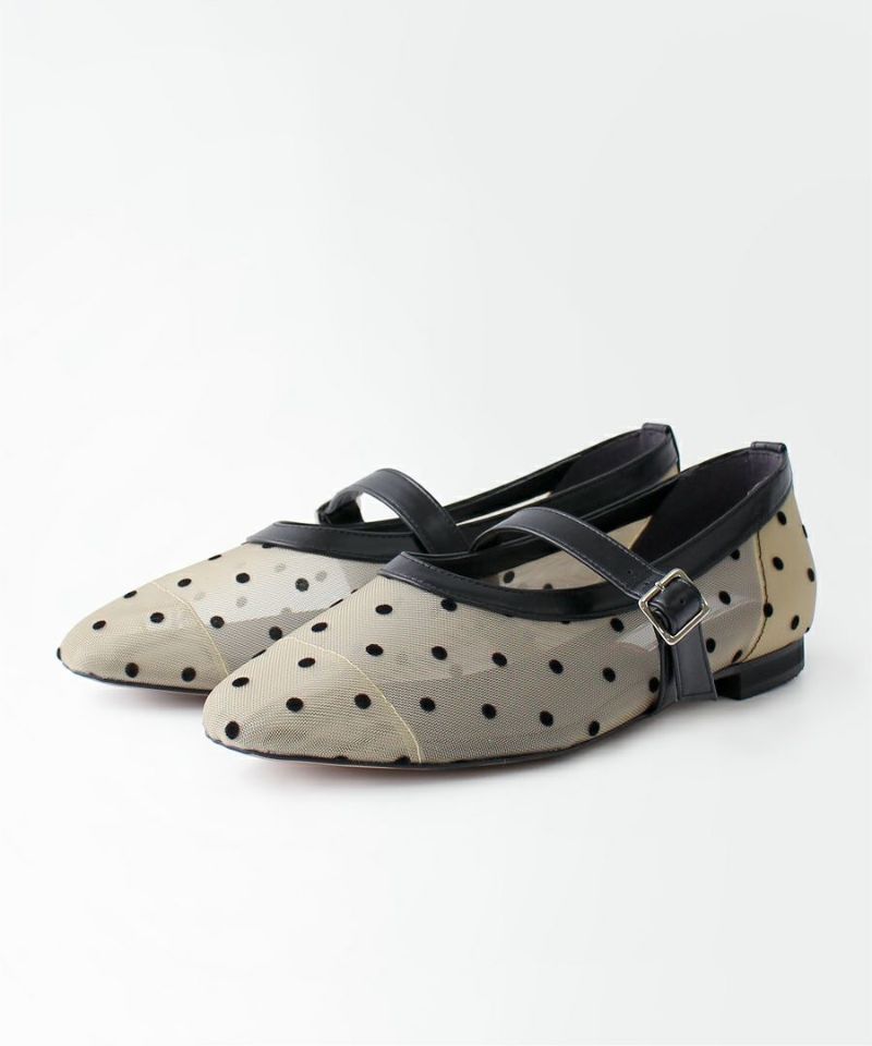 足指が透けて見える、チュール素材のフラットシューズ。