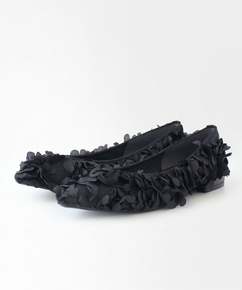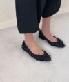 フリルで全体を覆ったデザインで、ボリューム感が楽しめるフラットシューズ。
